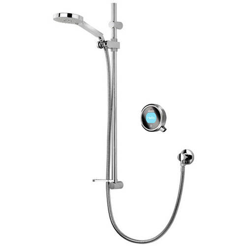 Aqualisa Q Smart digital shower pack 14C for gravity pumped systems (thermostatic). Complete kit with mixer unit, controller, slide rail kit, wall outlet and metallic bright chrome accent pack.