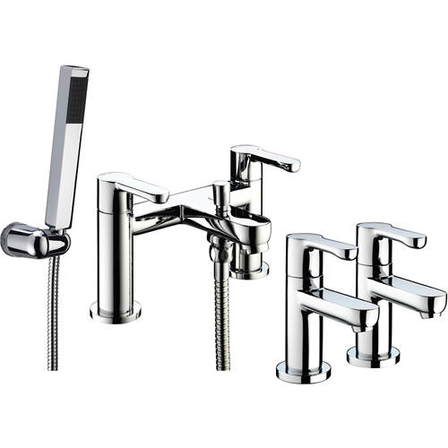 Bristan Nero pair of basin taps and bath shower mixer tap pack in chrome finish.