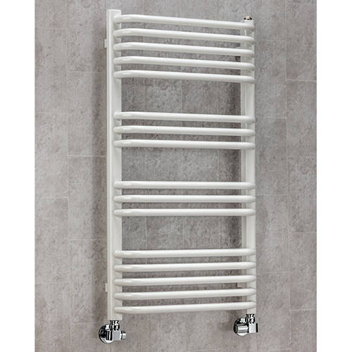 COLOUR Apsley heated towel rail with wall brackets in white (900x600mm).