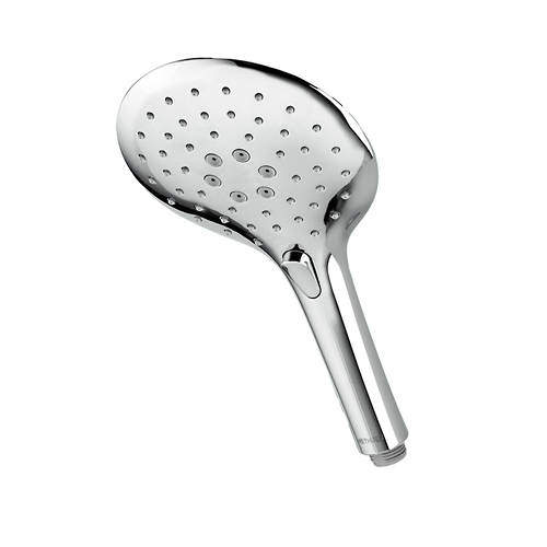 Methven Airstream shower handset in chrome and white with 3 spray functions.