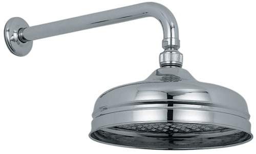 Traditional 8" fixed shower head and arm in chrome. Minimum water pressure 0.5 bar.
