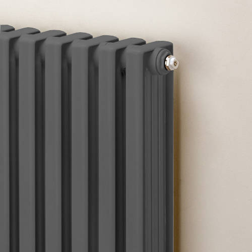 EcoHeat Woburn column style vertical aluminium radiator with wall brackets in window grey (1870x420mm).