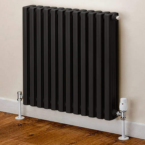 EcoHeat Woburn column style horizontal aluminium radiator with wall brackets in jet black (668x420mm).