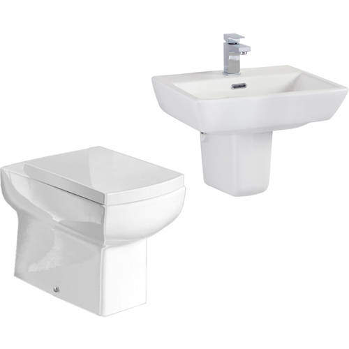 Oxford Daisy Lou contemporary bathroom suite with back to wall toilet pan, soft close seat, one tap hole basin and semi pedestal.