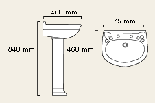 Vale 2 Tap Hole Basin and Pedestal. Taps & waste not included.