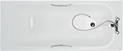Steel bath with handles and anti-slip shoering pad. 1700 x 700mm. Legs included. Taps and bath panels not included.