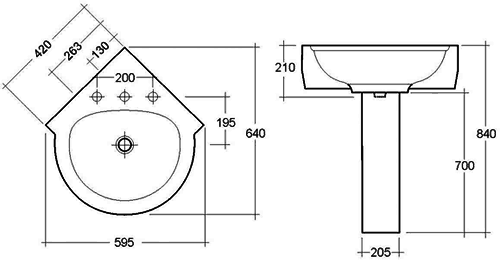 4 Piece corner bathroom suite with 1 tap hole basin.