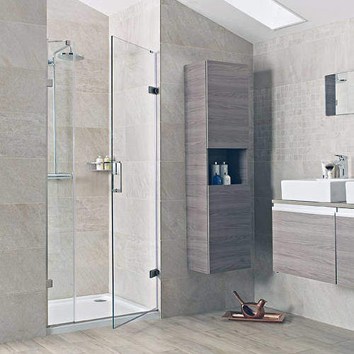 Roman Liber8 Collection has been designed to be the cutting edge of fashion and due to its stylish frameless nature it must only be installed on to straight walls. This leading collection of design led shower enclosures is perfectly completed with the frame finish options of either bright silver chrome or a warm brushed nickel finish on all components. The door is hinged straight from wall and features optically clear seals to really capture the minimalist look of the shower enclosure. The hinged door enclosures can be easily tailored to suit your specific bathroom layout. The hinged door can be installed to open outwards into the bathroom or to open inwards into the enclosure itself. This allows you to choose the right configuration to fit in with your existing bathroom layout, fixtures and fittings. This shower door can be fitted in multiple configurations; independently in an alcove or with added side panels or in-line panels.