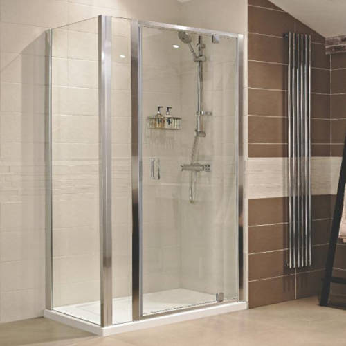 Lumin8 rectangular shower enclosure in silver with 1000mm pivot door and 300mm in-line panel (1300x800mm).