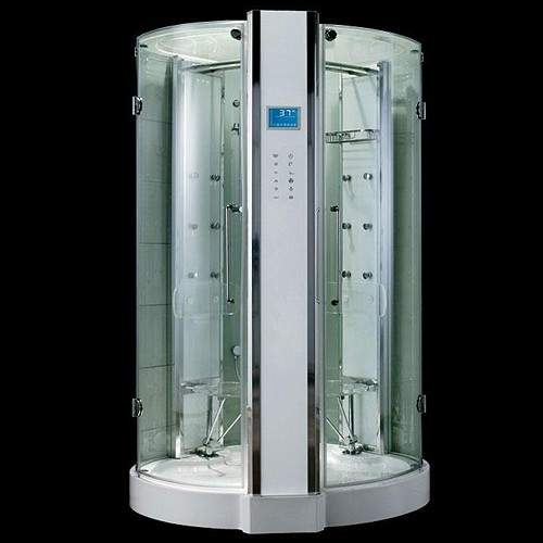 Hydra Corner Steam Shower Enclosure With Twin Controls. 1350x1350.