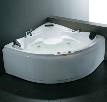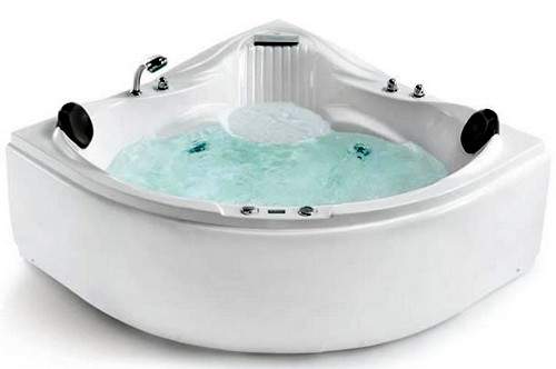 Corner whirlpool bath with panel. Size 1520x1520x700mm.