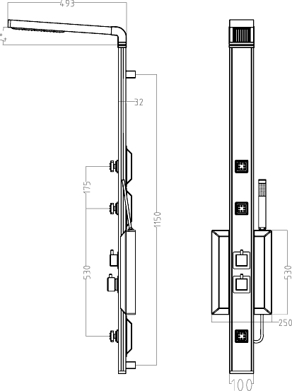 Enya thermostatic dream shower panel in chrome and teak finish.