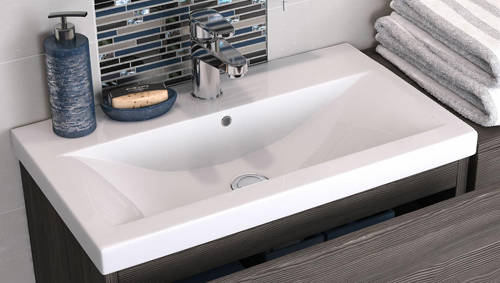 Hudson Reed Urban wall mounted vanity unit in avola grey woodgrain finish with ceramic basin (type 1).