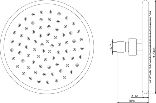 Larger image of Hudson Reed Showers Round Shower Head (200mm).Technical image of Hudson Reed Showers Round Shower Head (200mm).
