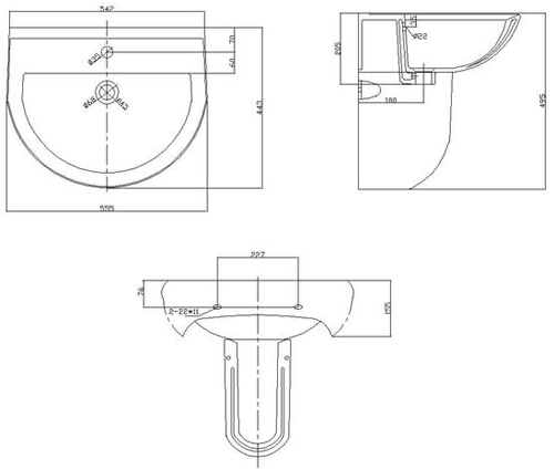 - 500mm Basin and semi pedestal included (1 tap hole).