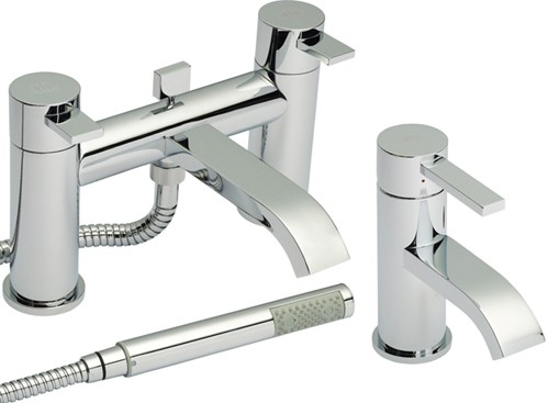 Basin mixer and bath shower mixer tap set in chrome with free shower kit.
